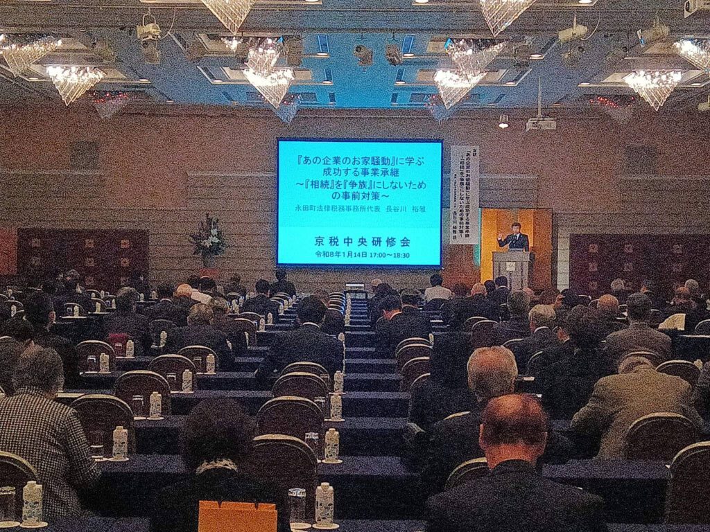 令和8年1月15日に弊所代表 長谷川裕雅が「『あの企業のお家騒動』に学ぶ成功する事業承継~『相続』を『争族』にしないための事前対策~」の講師を務めました。
